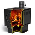 • У печи есть вертикальный выход дымохода, что обеспечивает удобство установки и подключения. Вы сможете спокойно наслаждаться теплом, зная, что печь безопасно работает и эффективно выполняет свои функции.